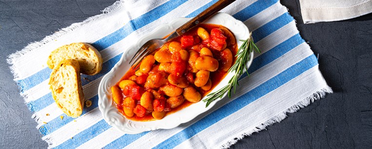 Ανακατεύουμε καλά και ψήνουμε σε μέτριο φούρνο μέχρι να γίνουν τα φασόλια και να δέσει η σάλτσα.