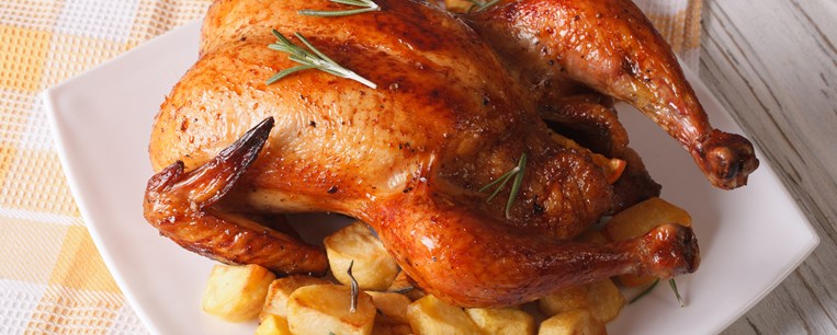 Ψήνουμε σε προθερμασμένο φούρνο στους 190 βαθμούς για 1,5-2 ώρες, ανάλογα το φούρνο και το μέγεθος του κοτόπουλου.