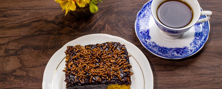 Βγάζουμε το γλυκό από το φούρνο και έτσι όπως είναι ζεστό με ένα ξύλινο καλαμάκι ή με ένα πιρούνι κάνουμε τρύπες ώστε να μπει μέσα το σιρόπι.