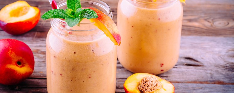 Για το παγωτό: Κόψε το ροδάκινο σε κομμάτια και ανακάτεψε το με το χυμό λεμονιού στο multi. Πολτοποίησε το καλά και πρόσθεσε το γιαούρτι.